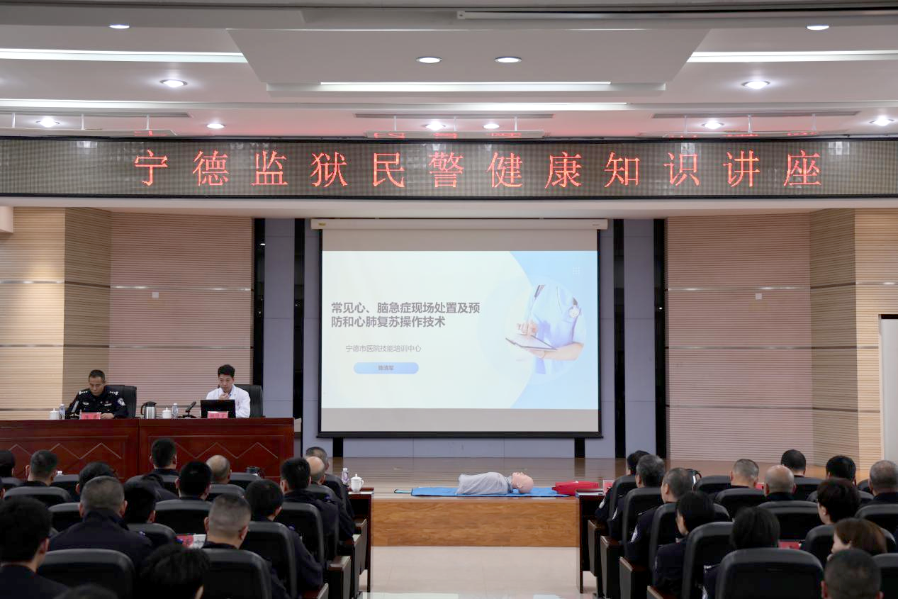 “当身边有人突然倒地、意识丧失,黄金救援时间只有4分钟,我们能做什么?”宁德监狱会议室,一场围绕心脑血管急症处置与预防的健康知识讲座正在进行。宁德市医院急诊科主治医师陈清军、护士长黄珍影,重点围绕常见心脑急症的现场处置及预防等专题进行授课。台下,民警们专注聆听,不时低头记录。